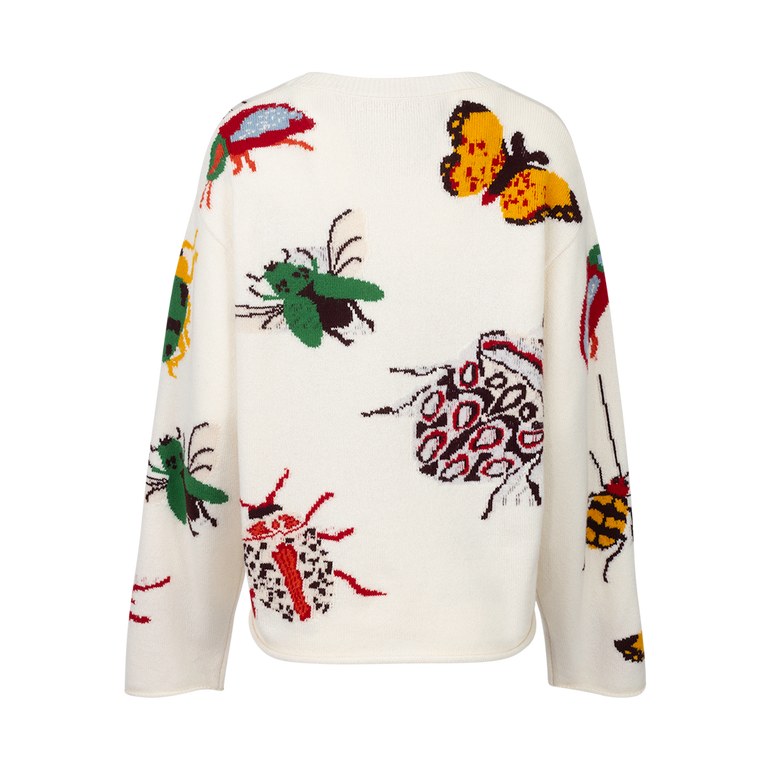 Crewneck sweater in slightly oversized fit with bug intarsia.