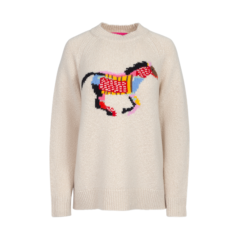 Heavyweight crewneck sweater with seasonal horse intarsia.