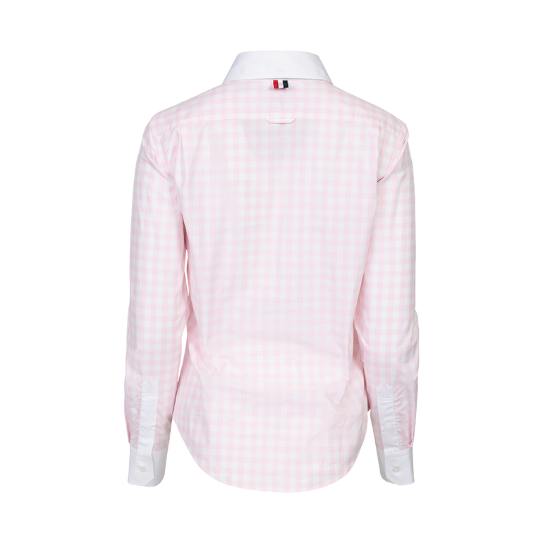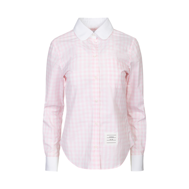 Long-sleeves shirt with rounded collar, button front and buttoned cuffs.