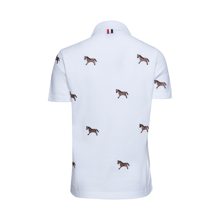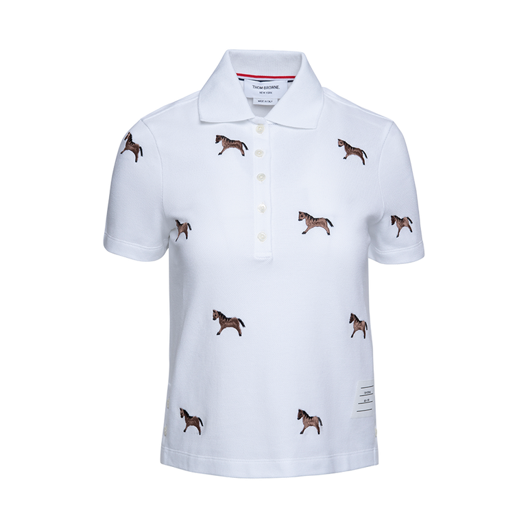 Short-sleeved shirt with polo collar, button-front closure and banded cuffs and ehm.