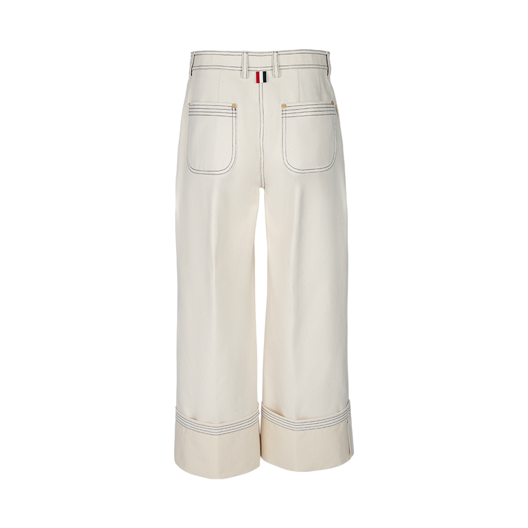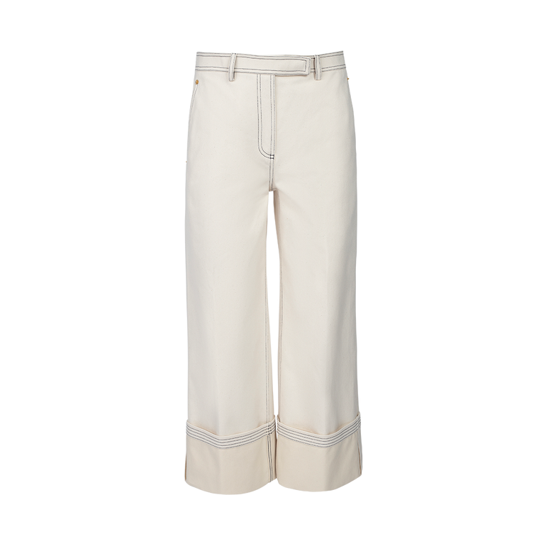 Trousers with tab front closure, back patch pockets and signature striped grosgrain loop tab.