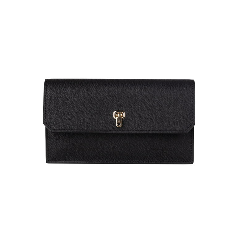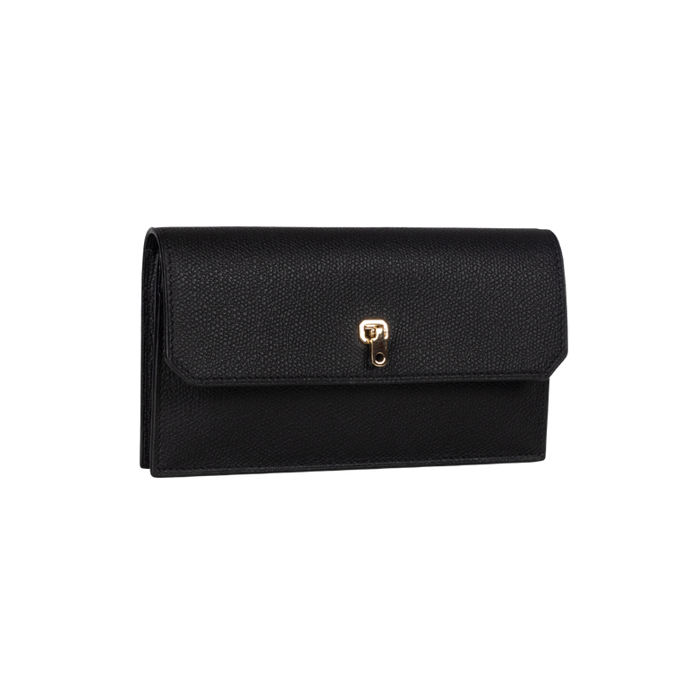 Vertical wallet with slimline design, 12 card slots with signature V-cutout and three internal compartments.