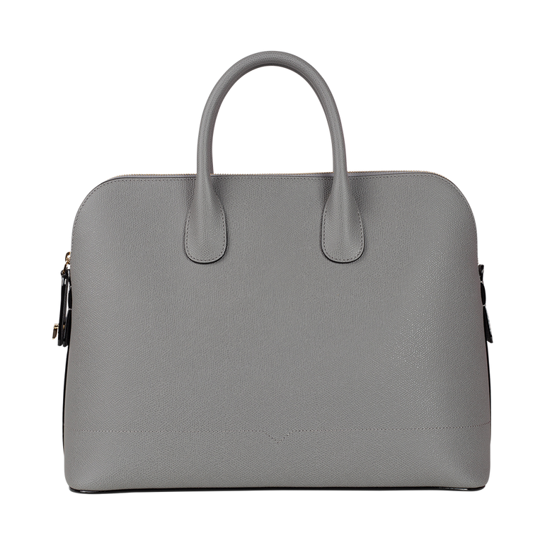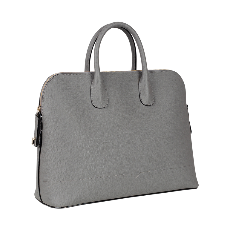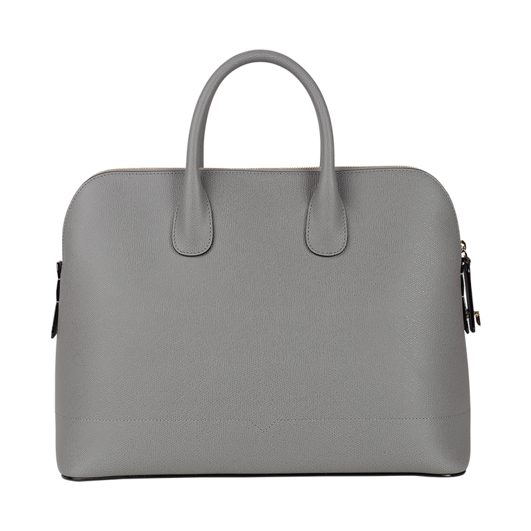 Top-handle bag with adjustable/detachable shoulder strap, signature V-cutout and three internal compartments. Approx. 6.7"D x 12"H x 17.7"W.