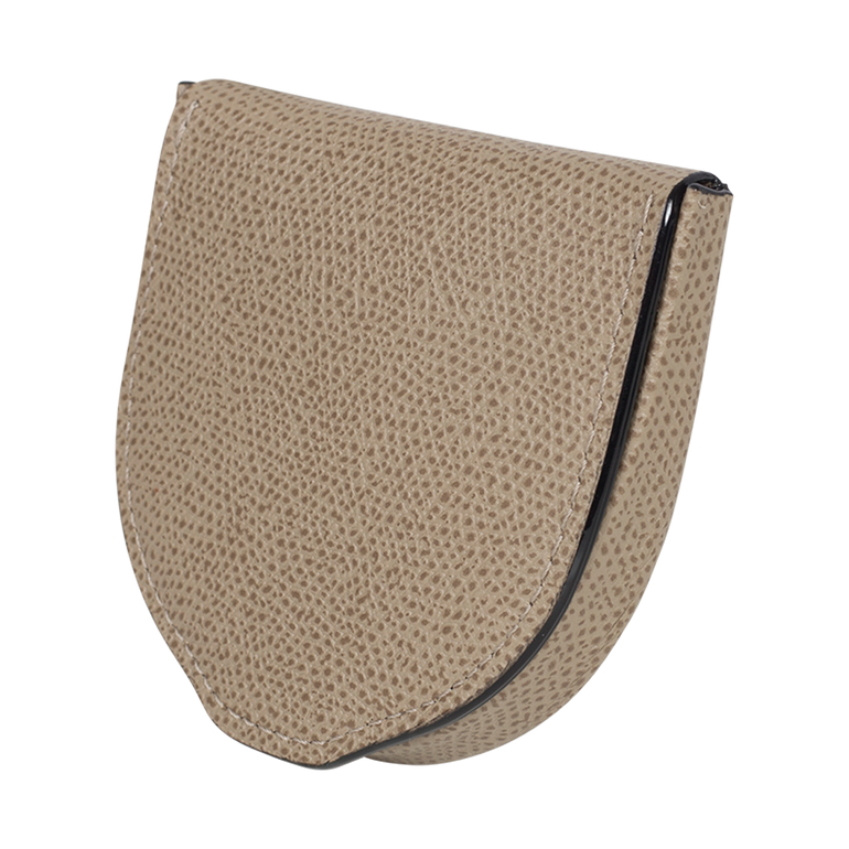 Coin purse with fastening-free folding closure, signature handpainted edges and interior coin compartment. .8"D x 3.1"H x 3.1"W.
