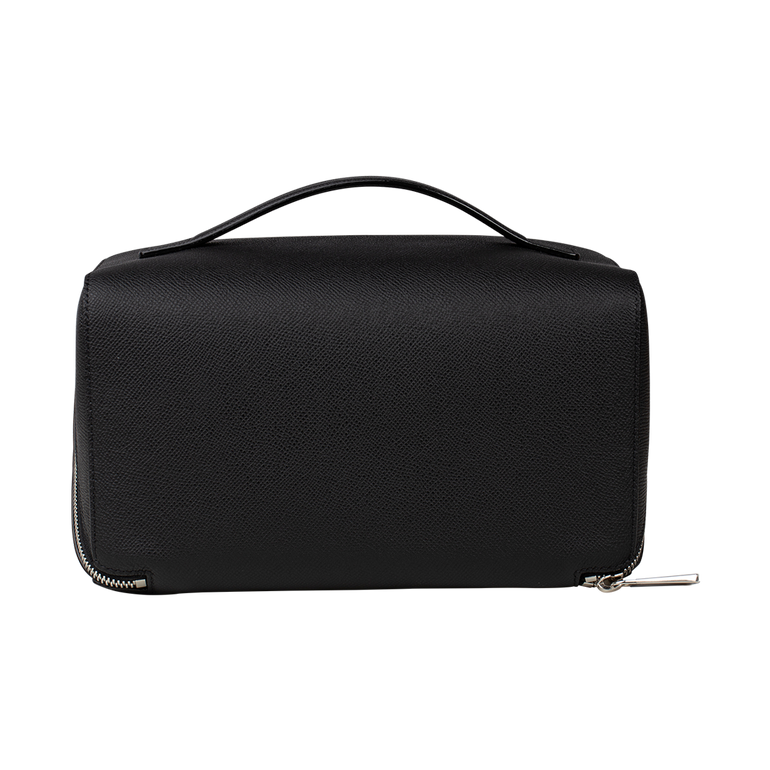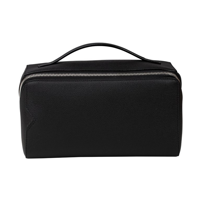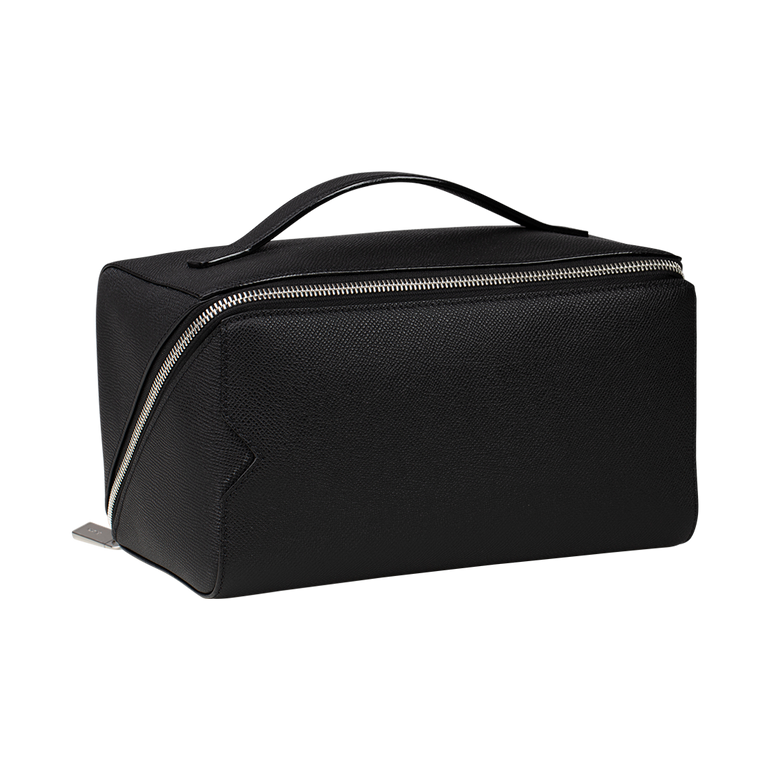 Makeup bag with single flat top handle, all-around zip fastening and main compartment. Approx. 5.9"H x 9.84"W x 5.9"D.