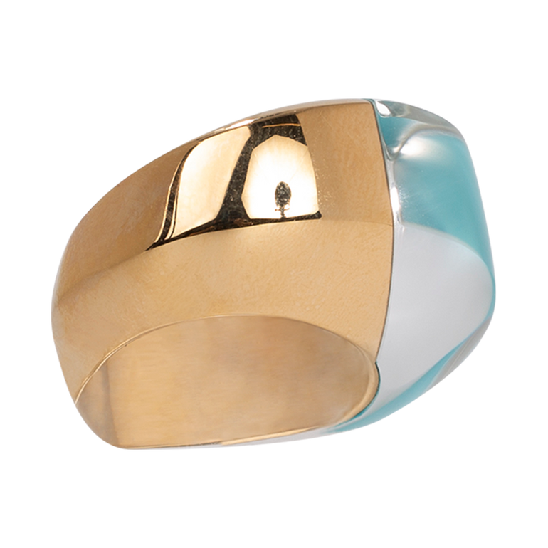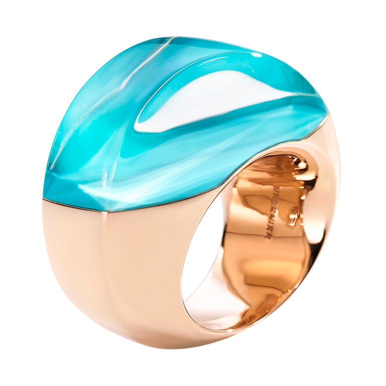 Aladino ring in rose gold, turquoise and rock crystal.