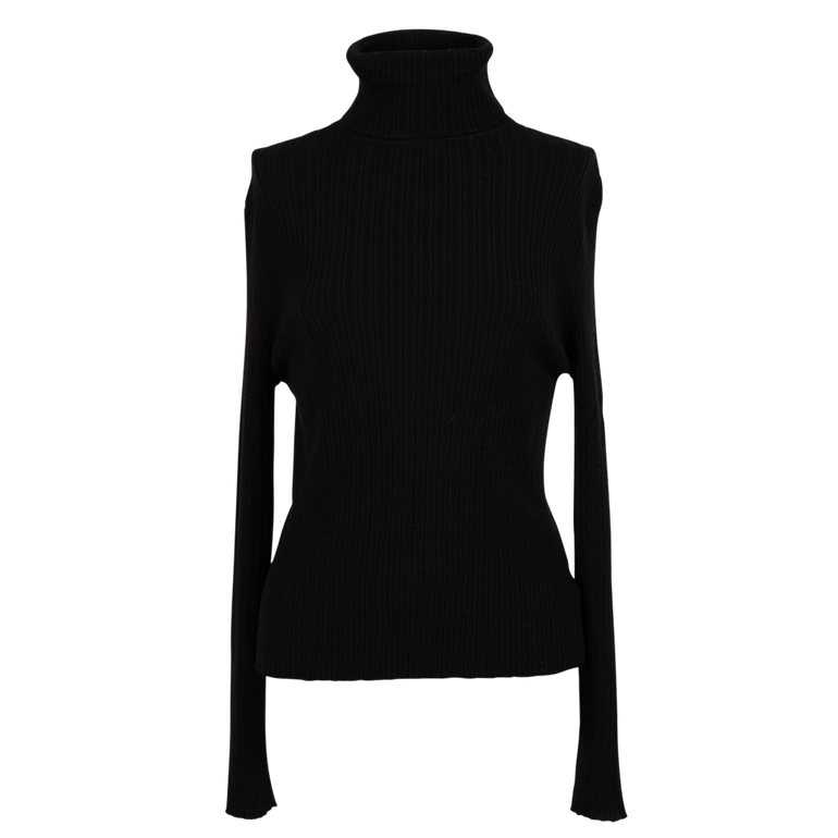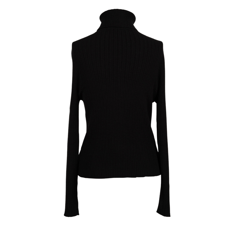 Fitted, ribbed knit, turtle neck, long sleeves.