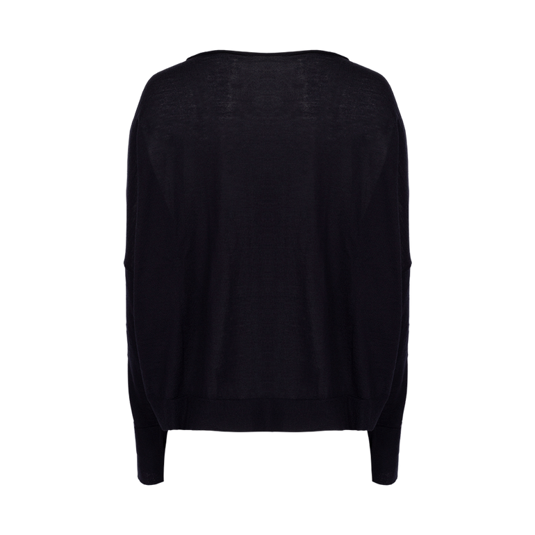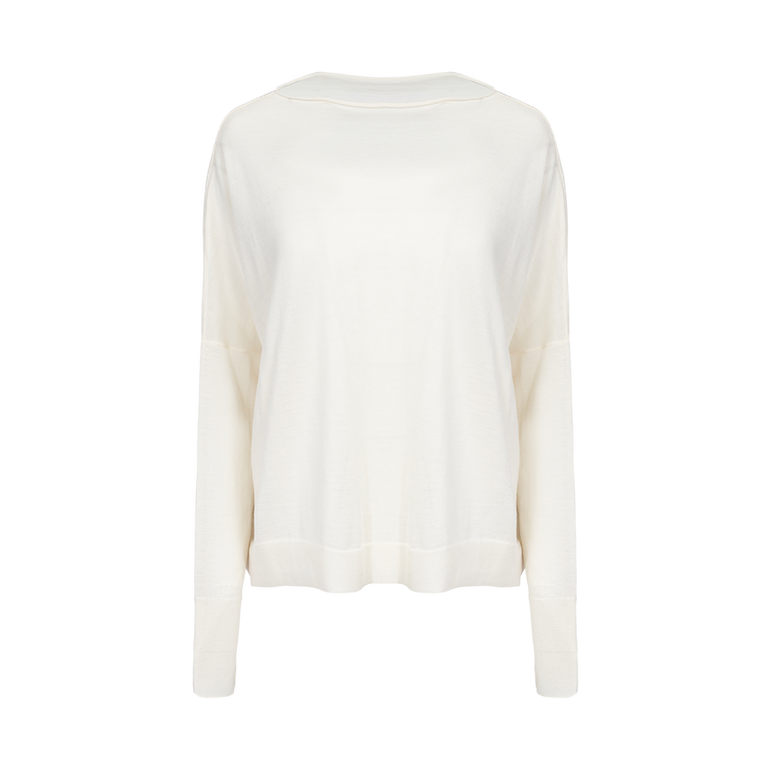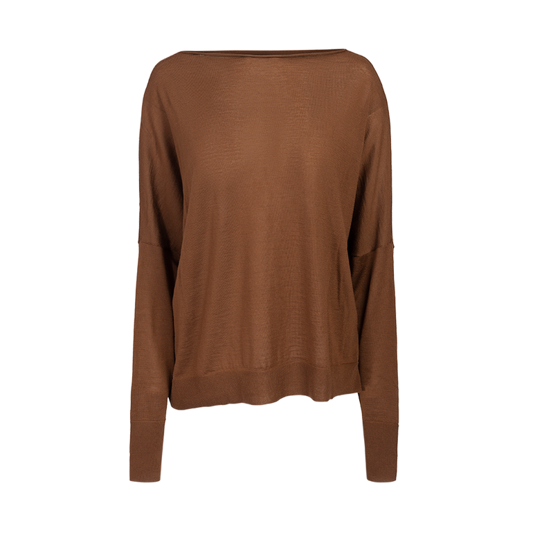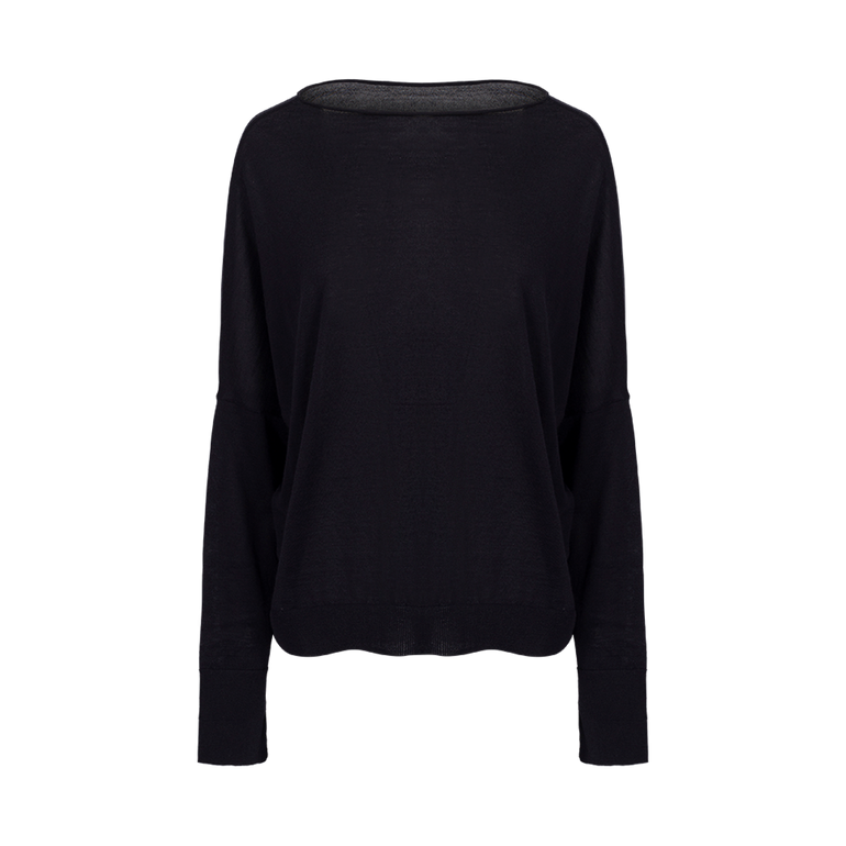 Knit sweater in relaxed fit with boat neckline, long sleeves and ribbed trim.