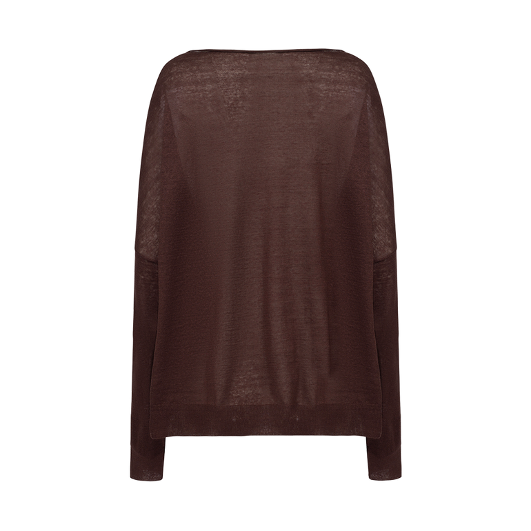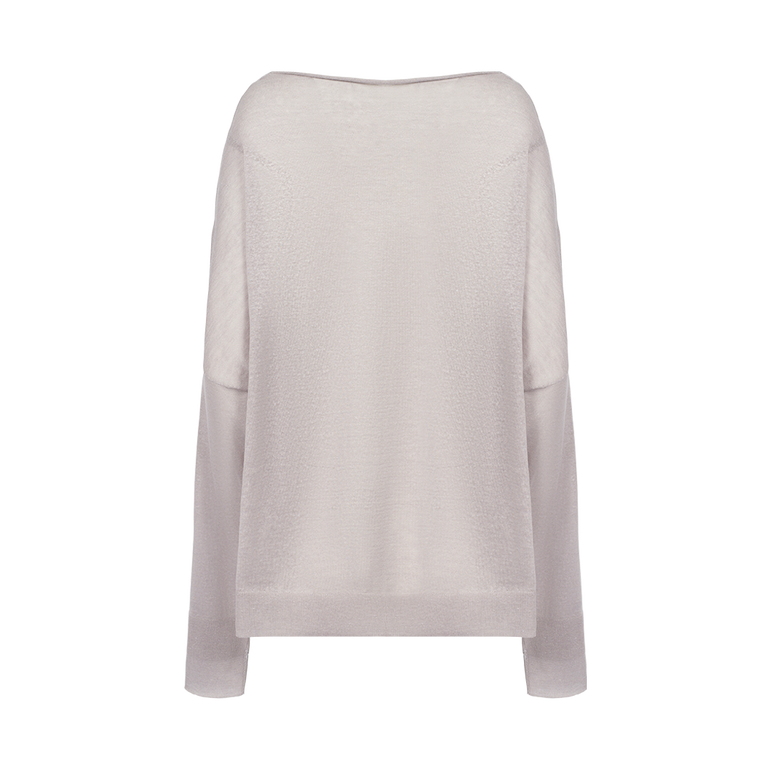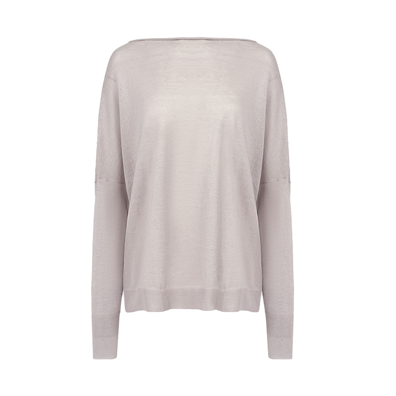 Relaxed-fit sweater with rolled boat neckline, drop shoulders, long sleeves and ribbed cuffs and hemline.