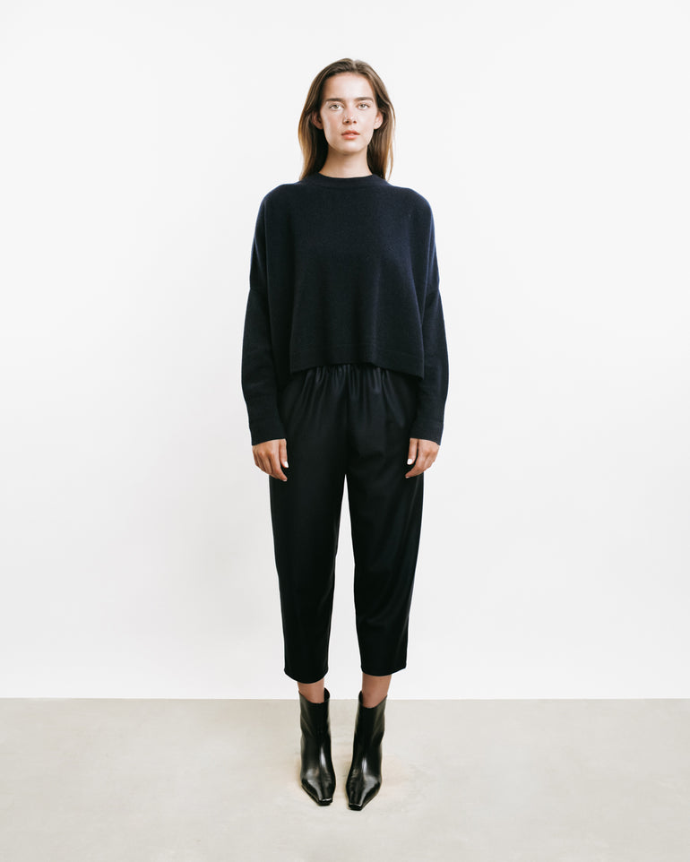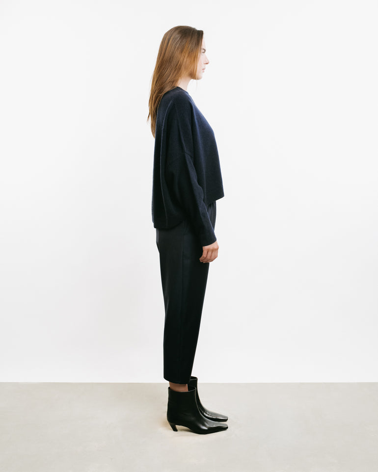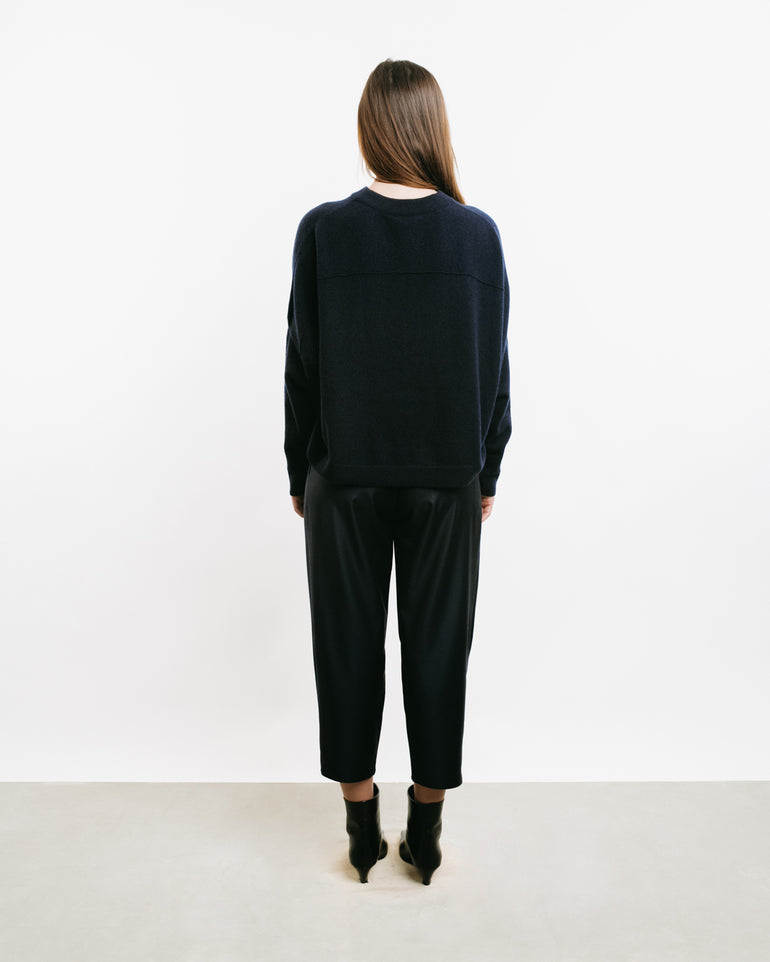 Sweater with round neckline, dropped shoulders and dolman sleeves.