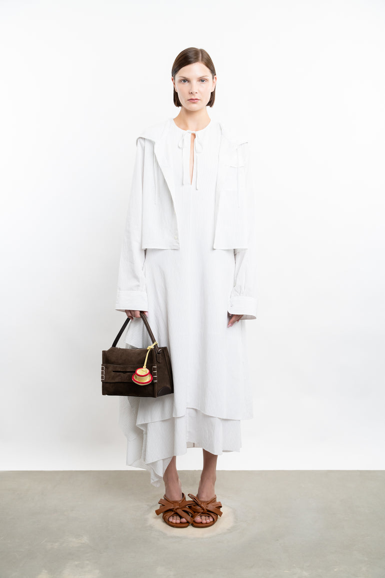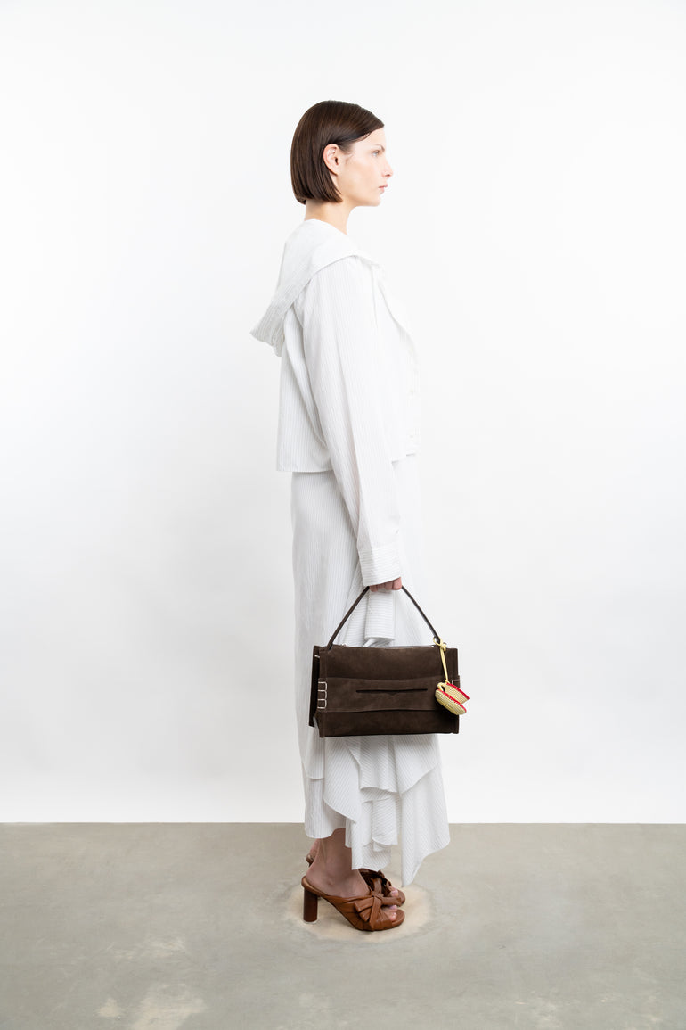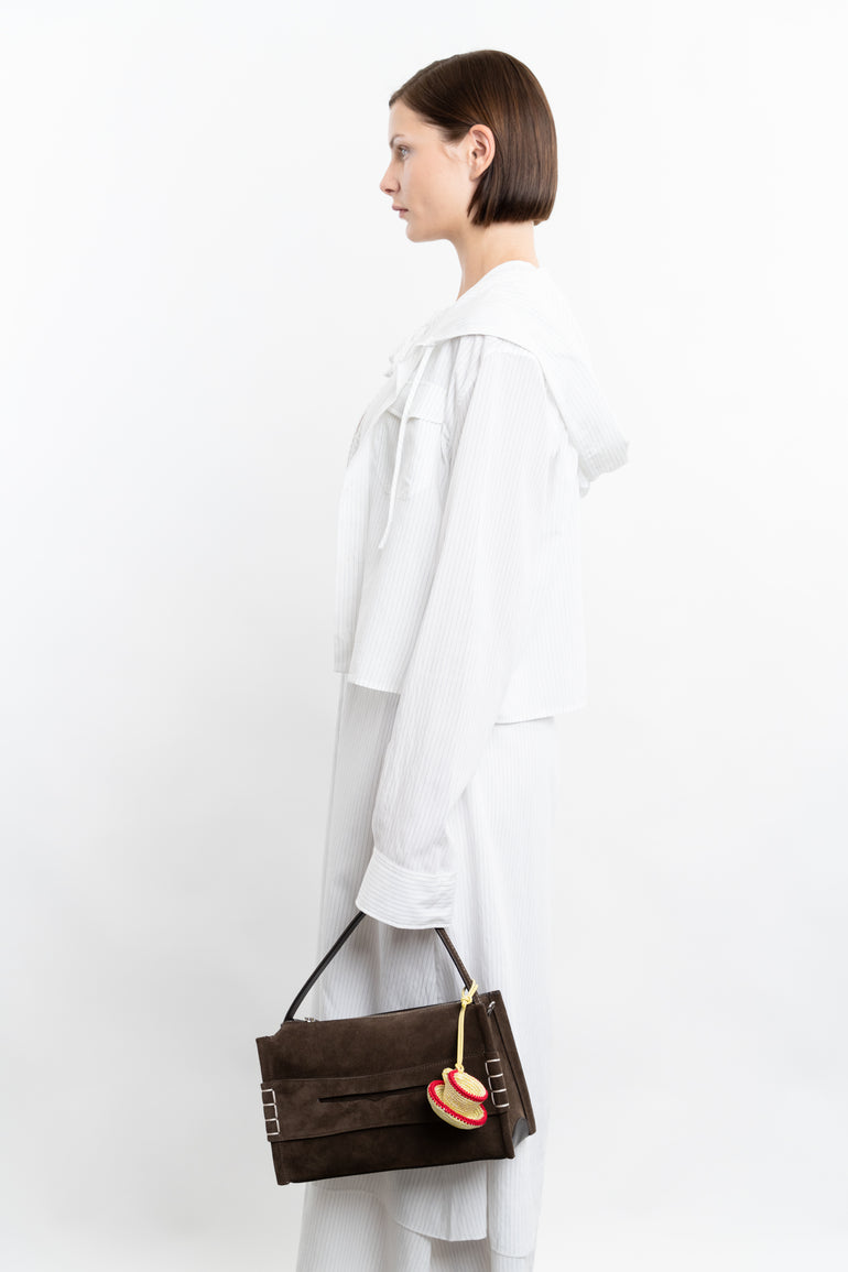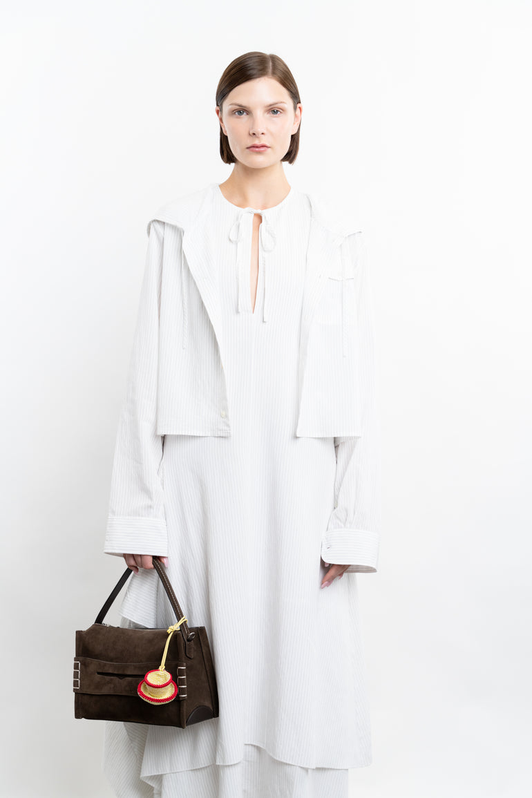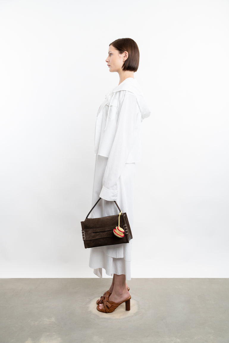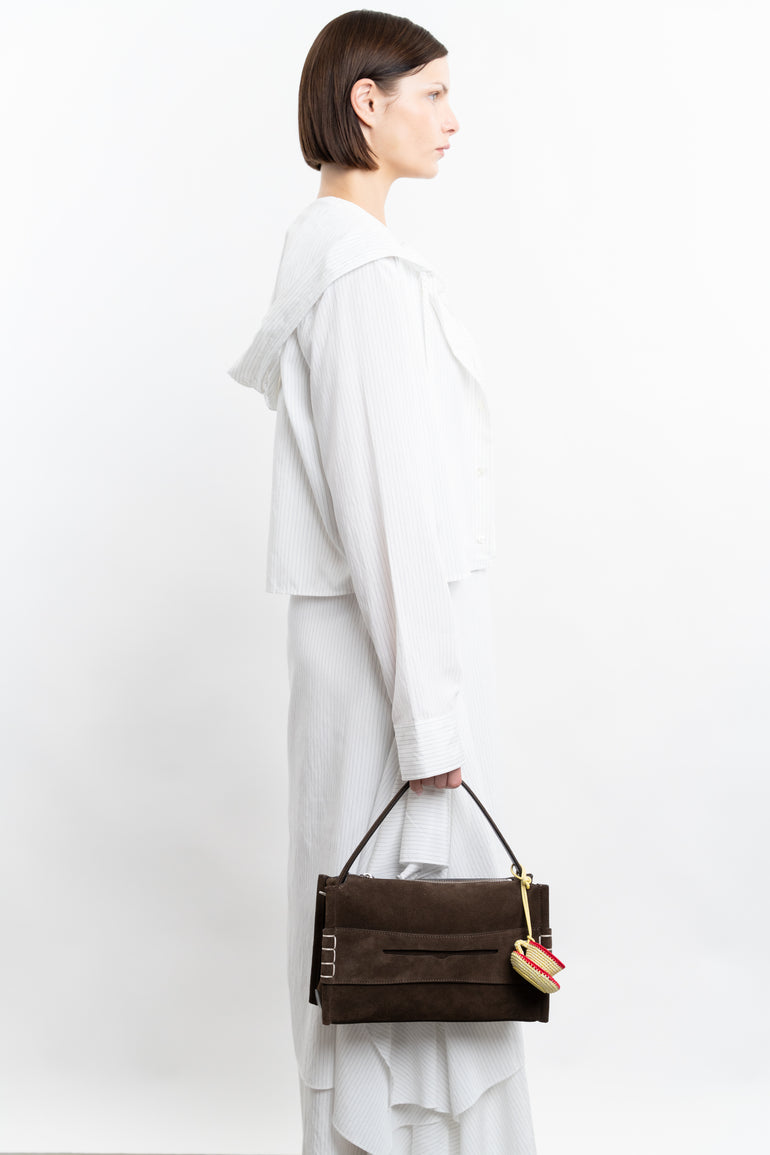 Hooded crop shirt with buttoned chest pocket and long sleeves with buttoned cuffs.