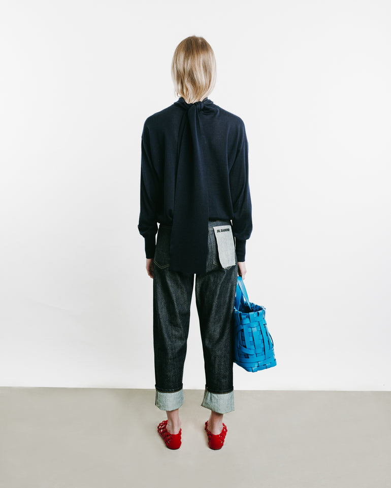 Turtleneck sweater with attached scarf, long sleeves and ribbed cuffs and hem.