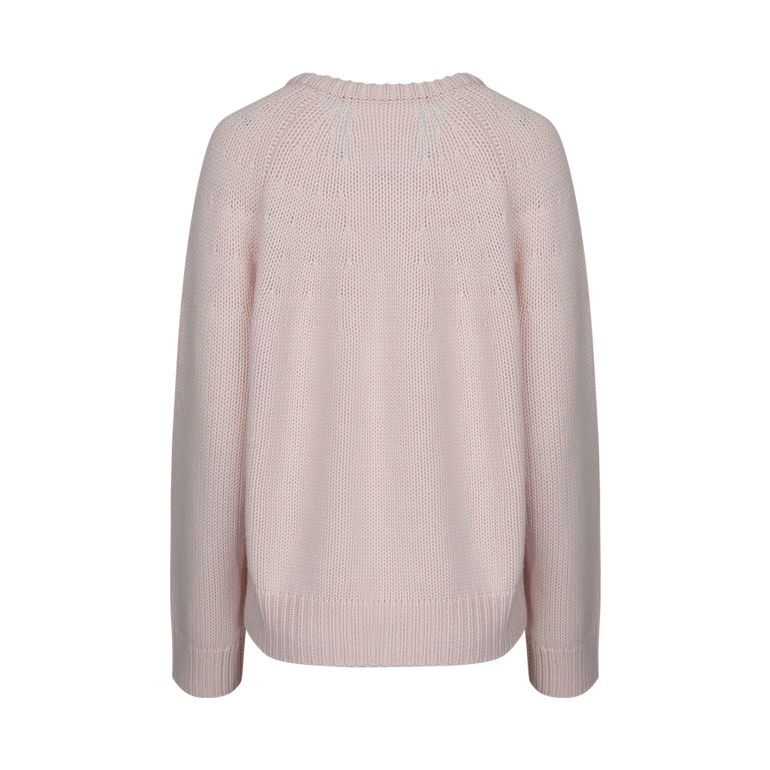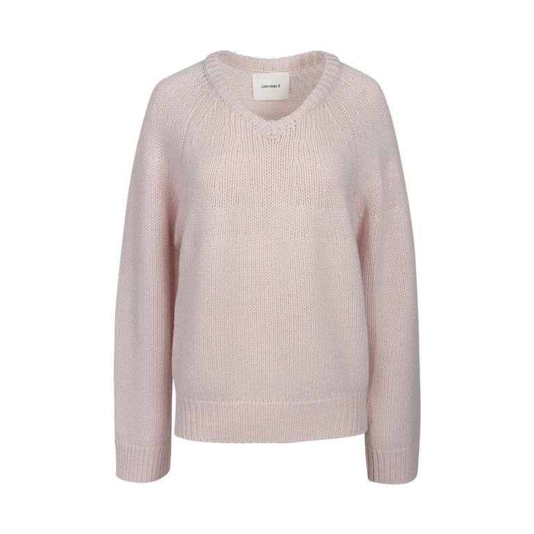 Oversized sweater with V-neckline and dropped, raglan sleeves.