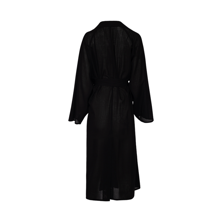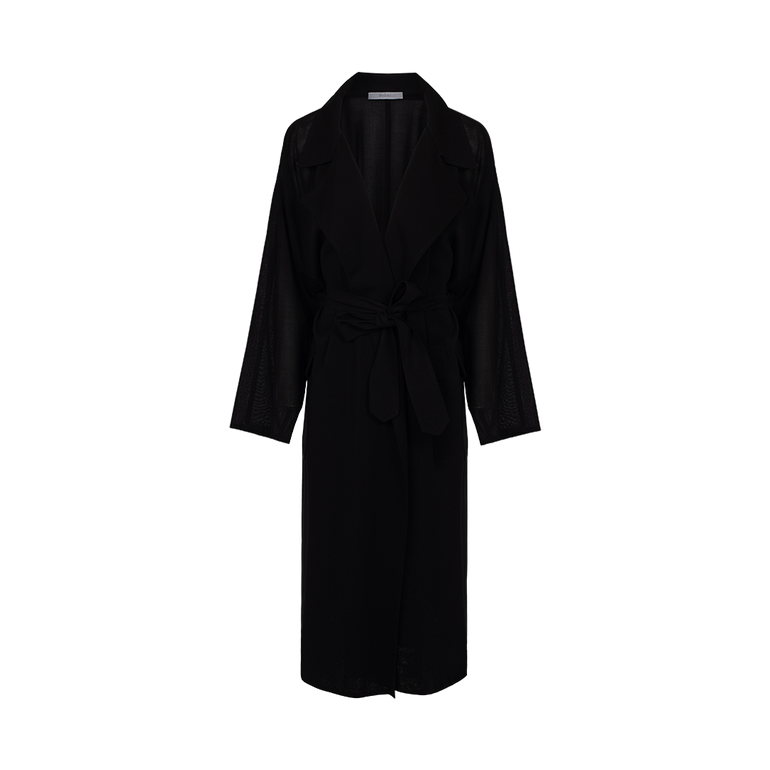Long trench coat in oversized fit with deep V-neckline, long sleeves and belted waist.