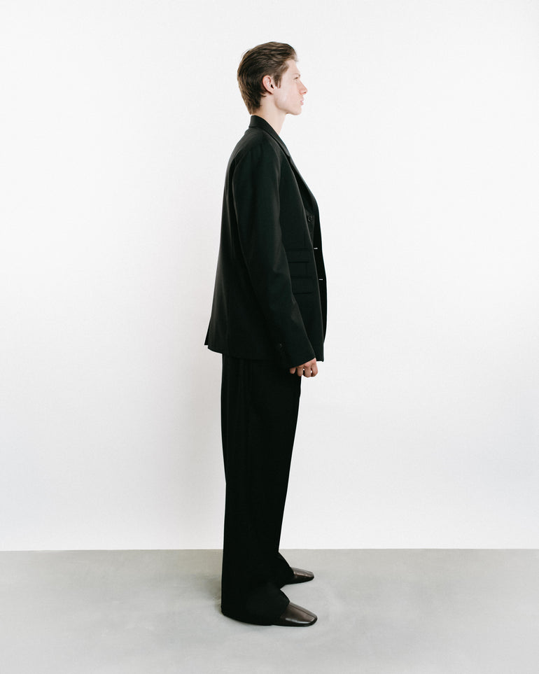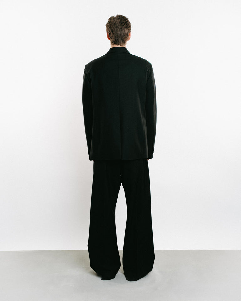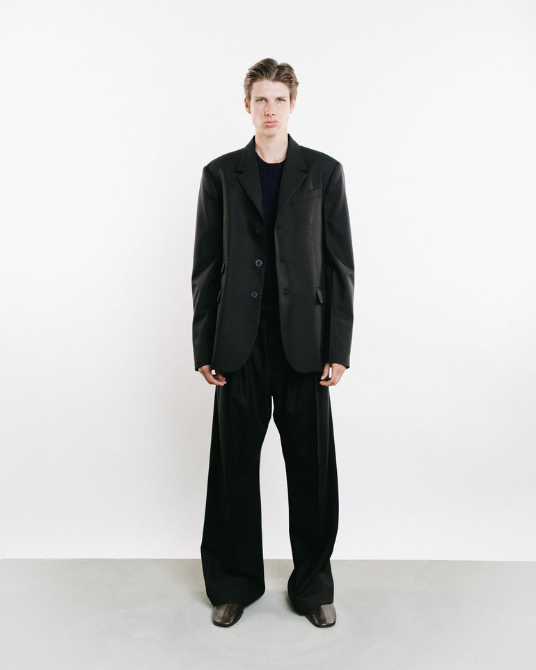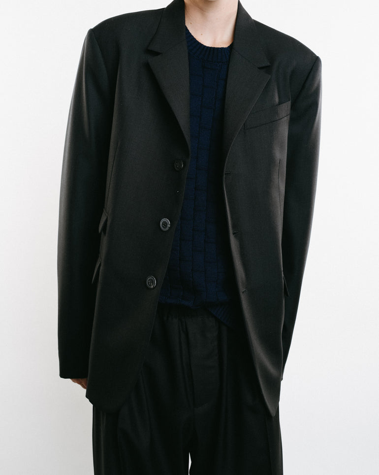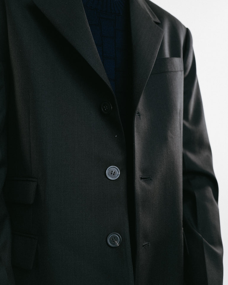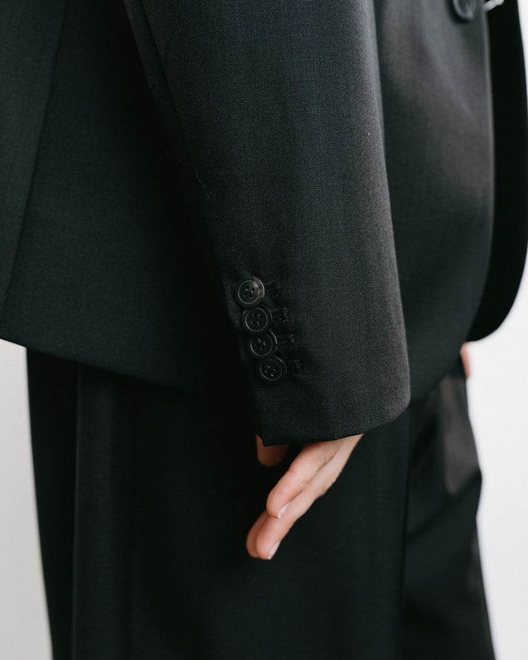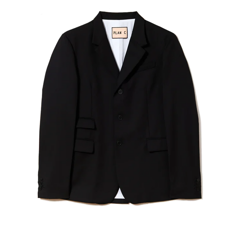 Black single breasted jacket.