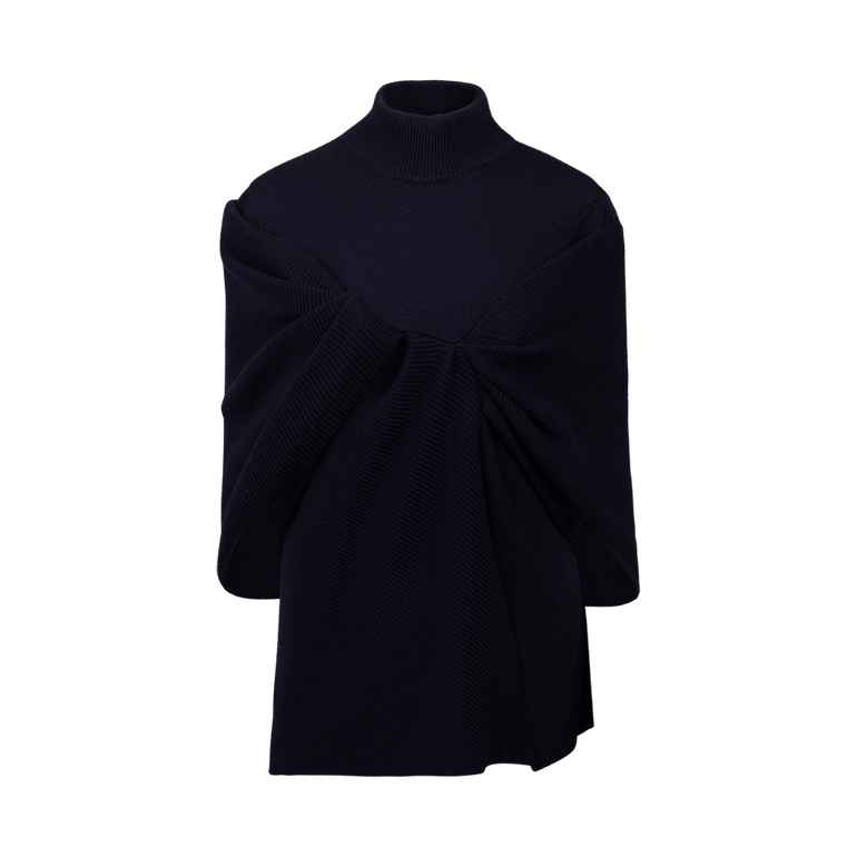 Rib-knit sweater with draped top layer, turtleneck, elbow-length sleeves and relaxed fit.