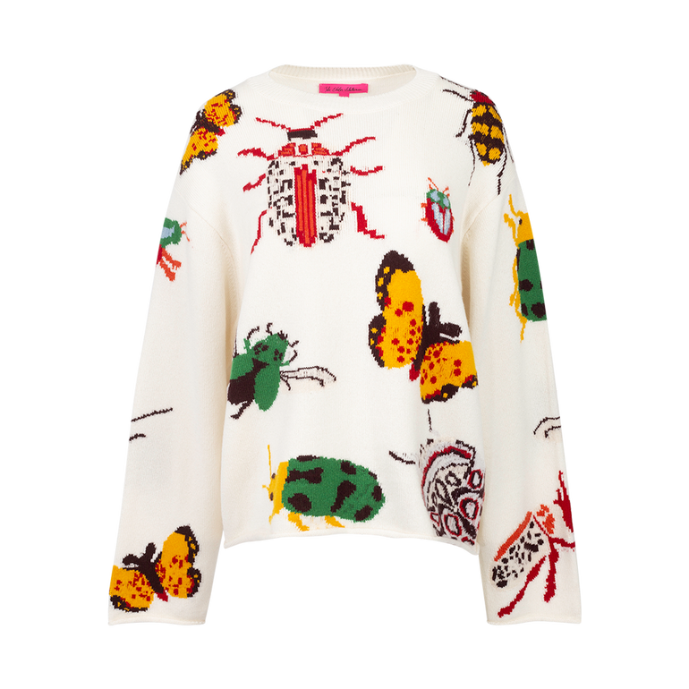 Crewneck sweater in slightly oversized fit with bug intarsia.