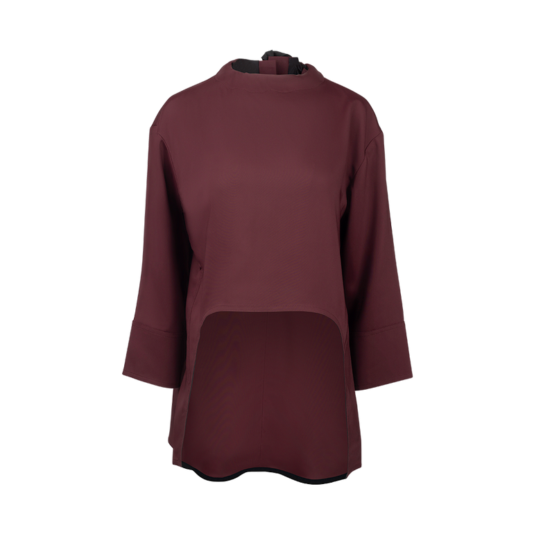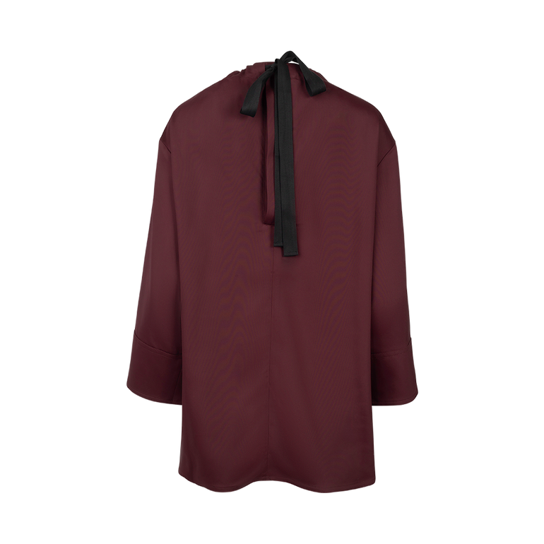 Long-sleeved shirt with high-low hem and bow fastening at back. Lined.