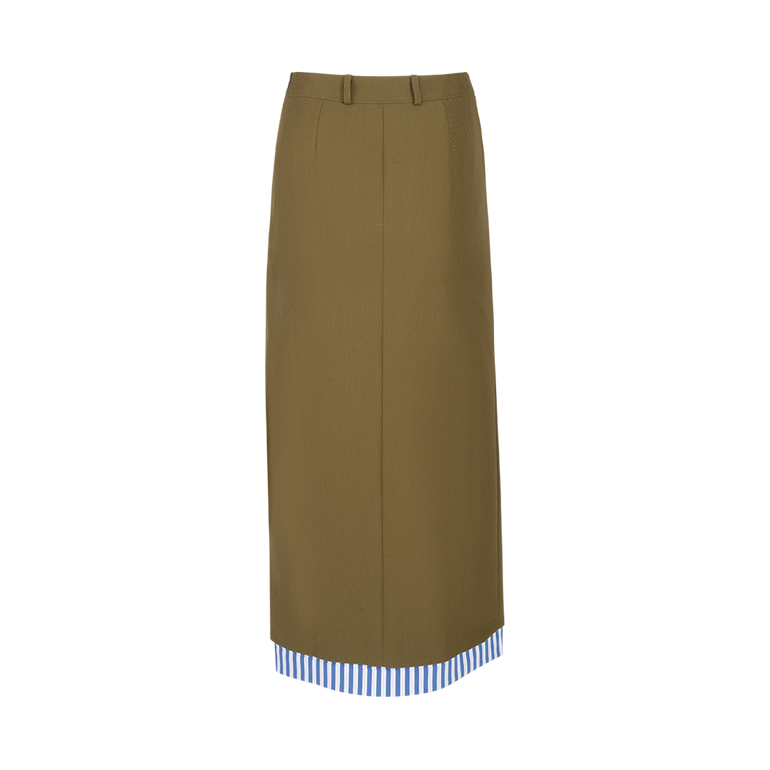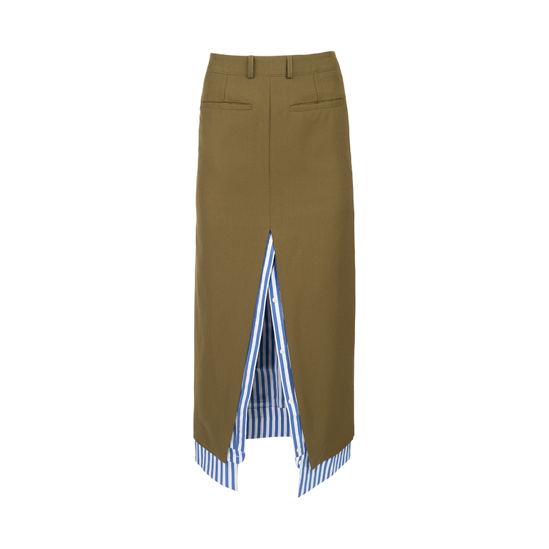 Skirt with striped panel, back vent, back pockets and concealed fastening.