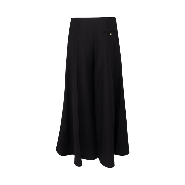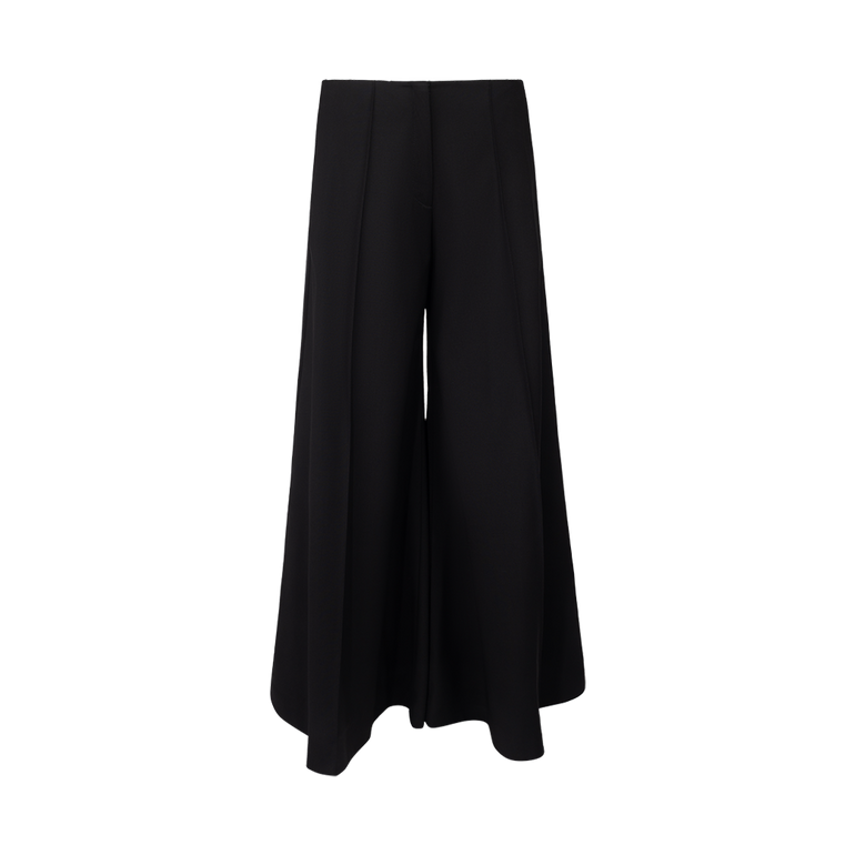 Exaggerated wide-leg pants with zip fly and back welt pocket.