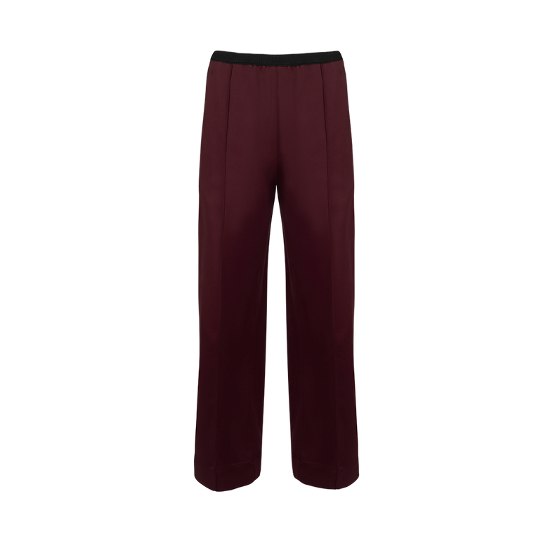 Wide trousers with black elasticated waist, front press folds and side slip pockets.