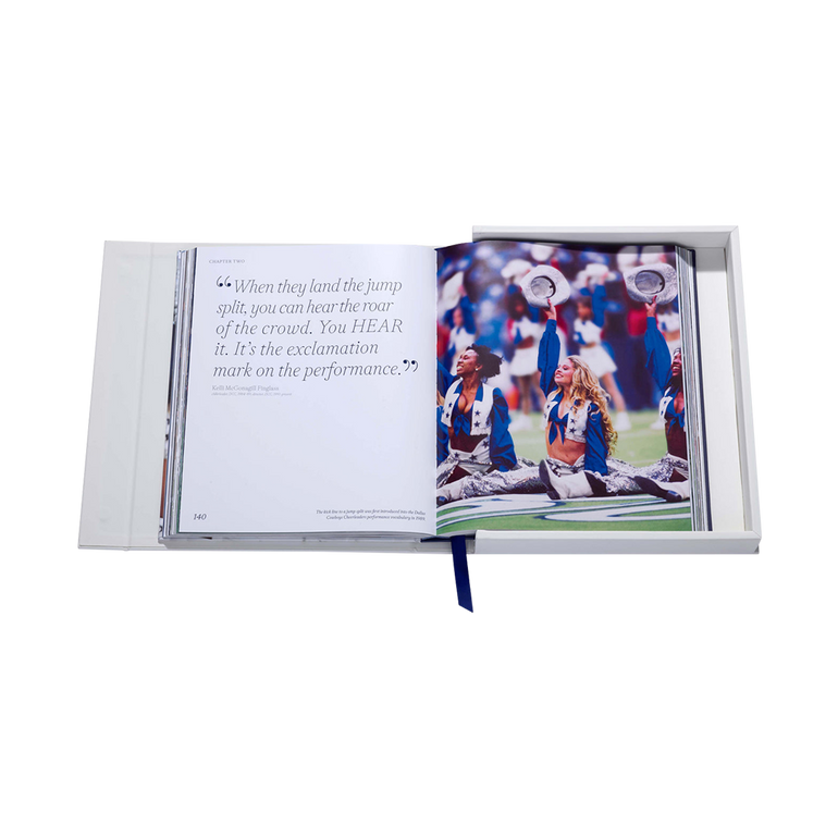 Handcrafted volume in a leather-like clamshell case with an oversized replica of the iconic star patch worn by Dallas Cowboys Cheerleaders.