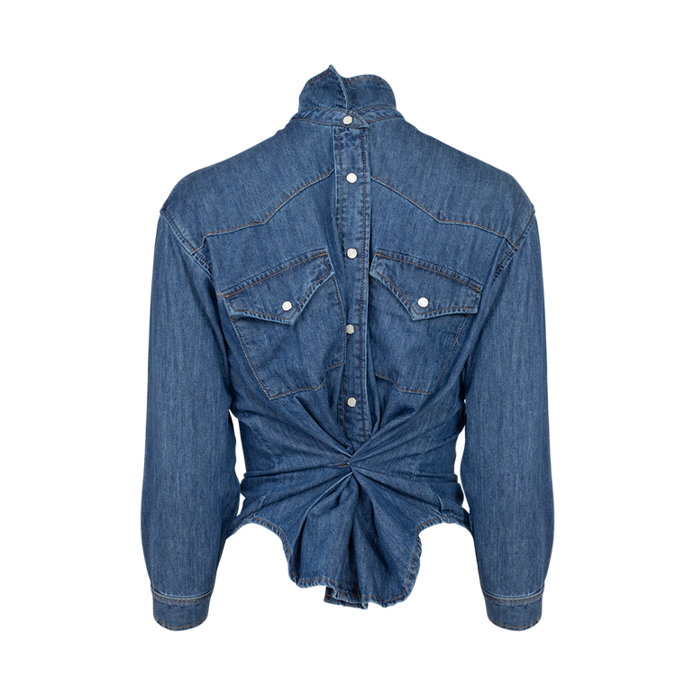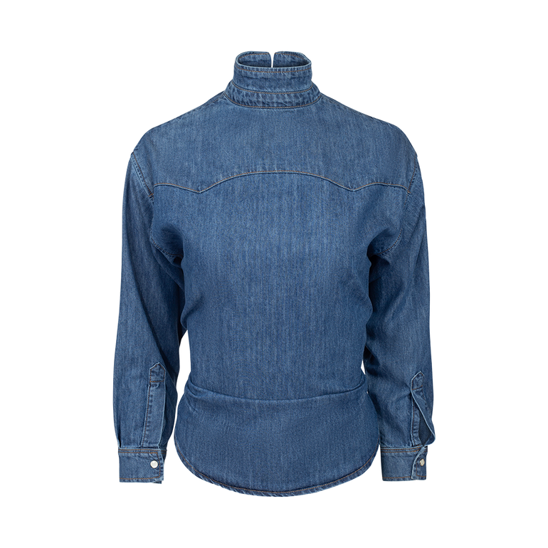 Long-sleeved, button-down shirt in reversed back-to-front design.