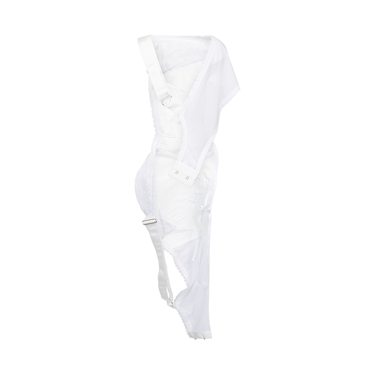 Sleeveless, bra-shaped top in asymmetric design.