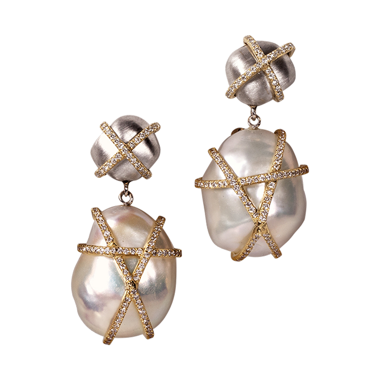 Earrings with freshwater pearls and 1.7 CT. T.W. diamonds.