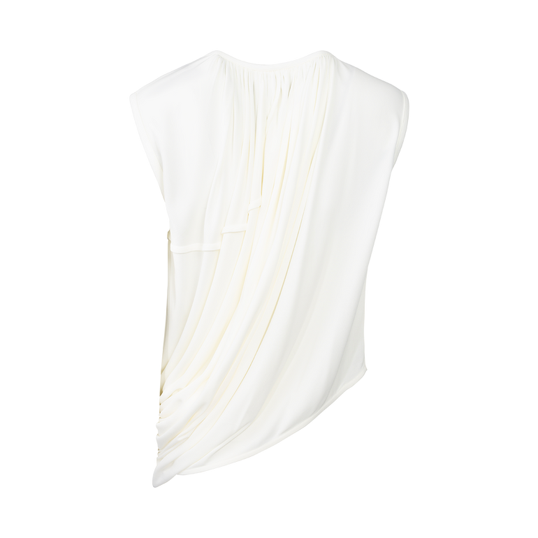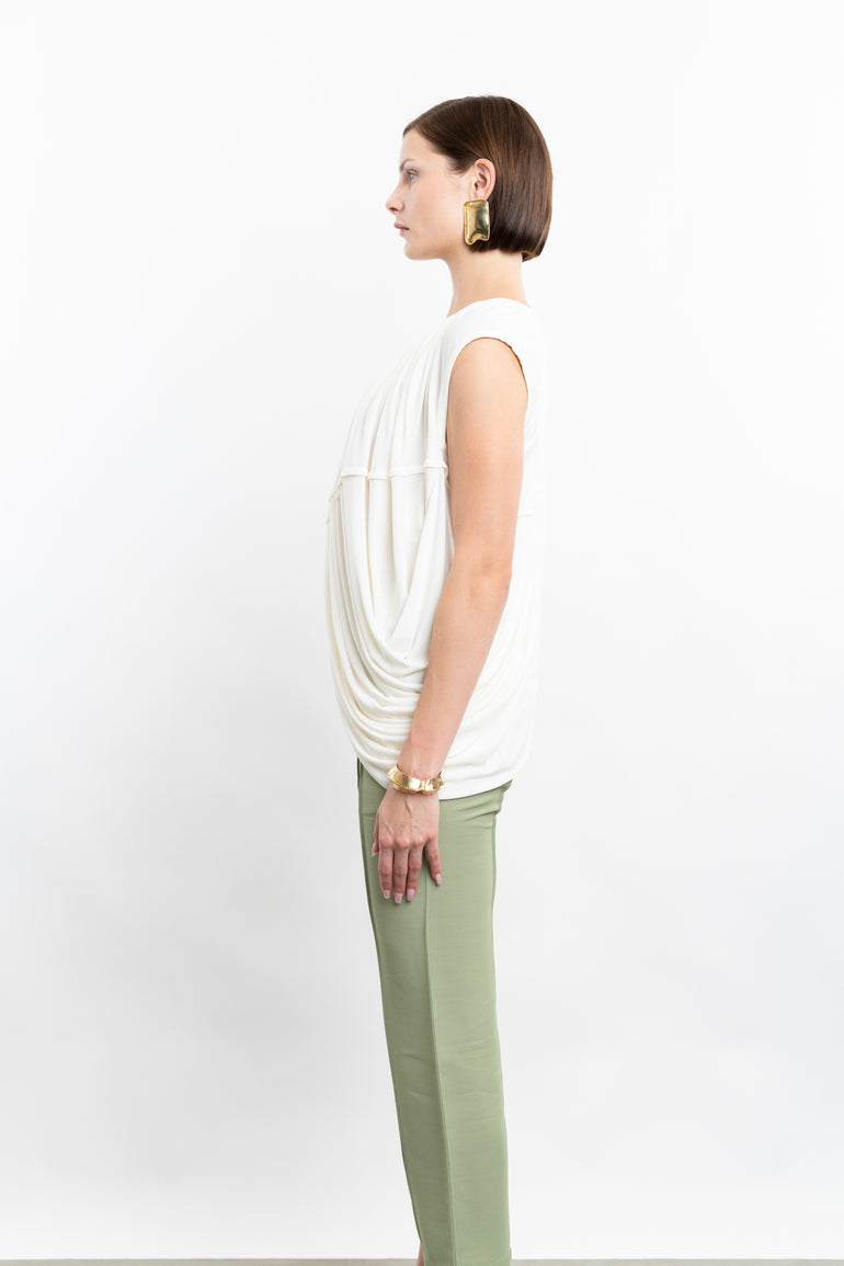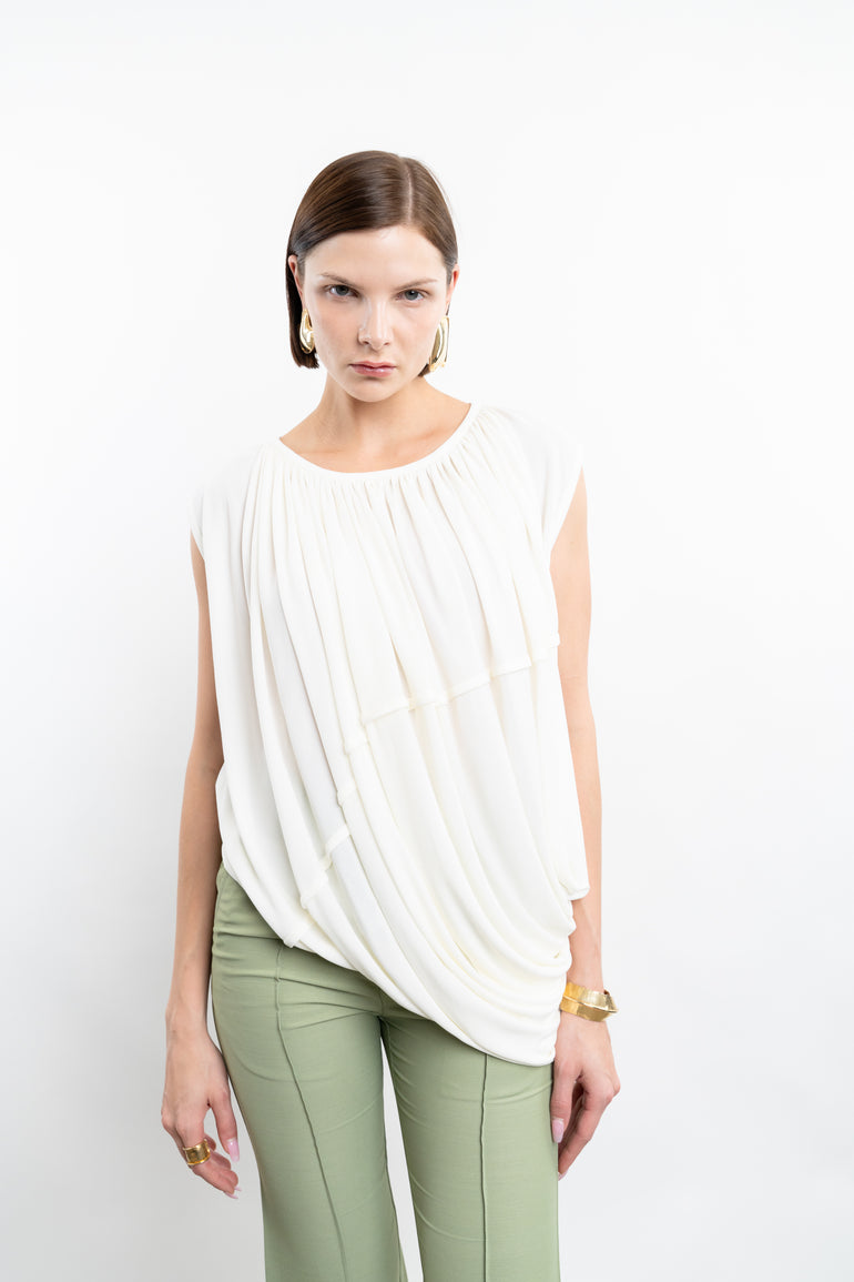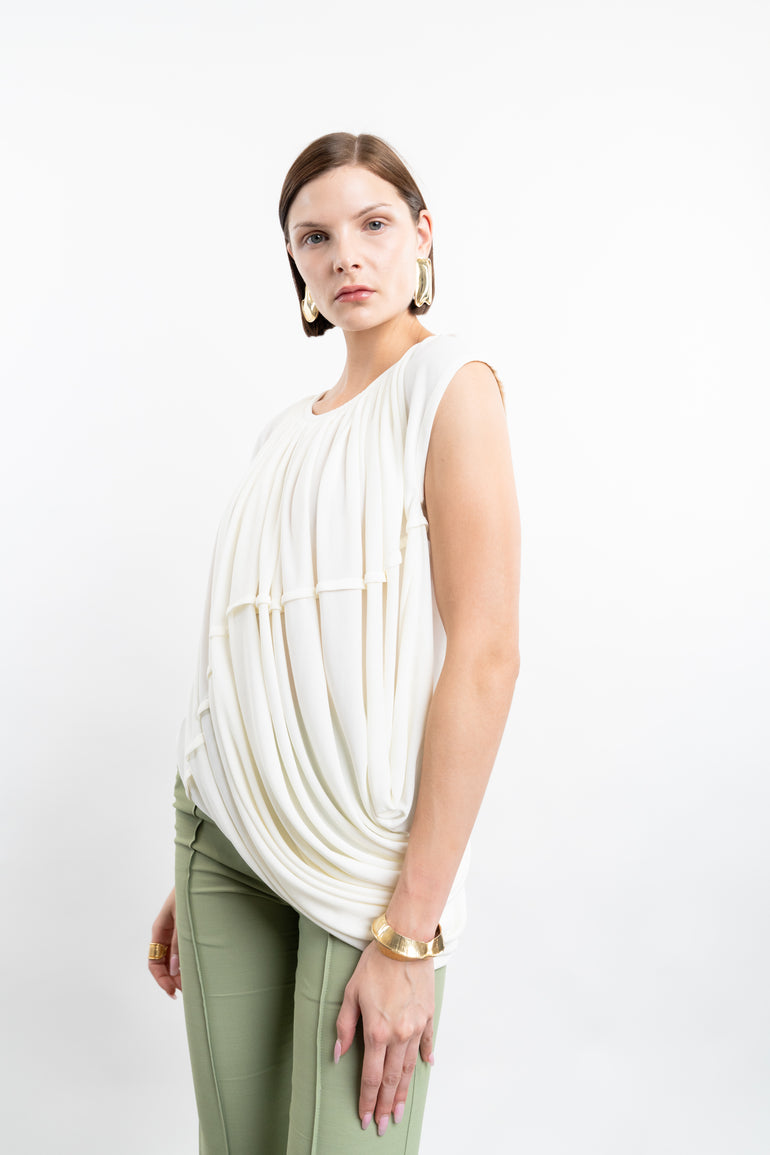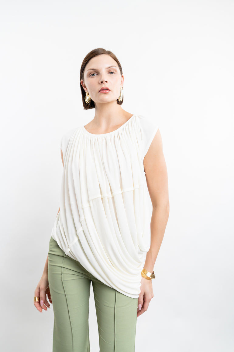 Sleeveless top in draped design with round neckline and delicate cap sleeves.