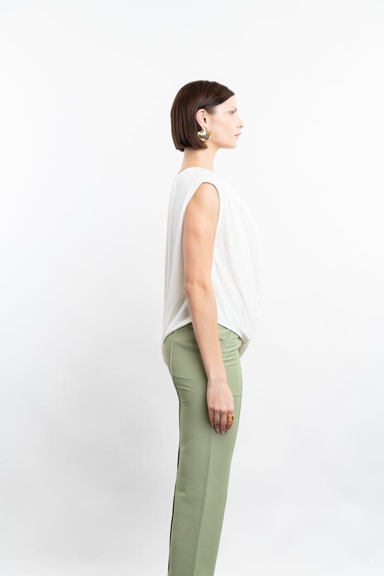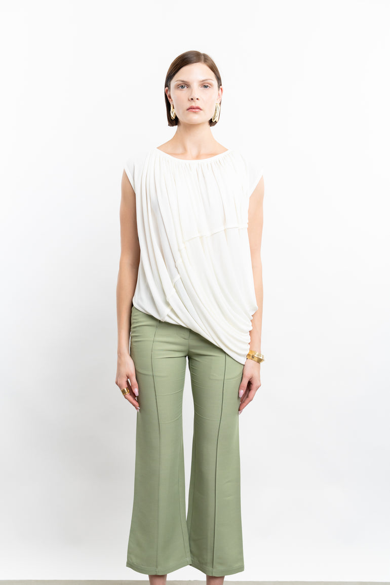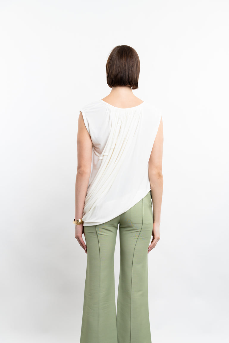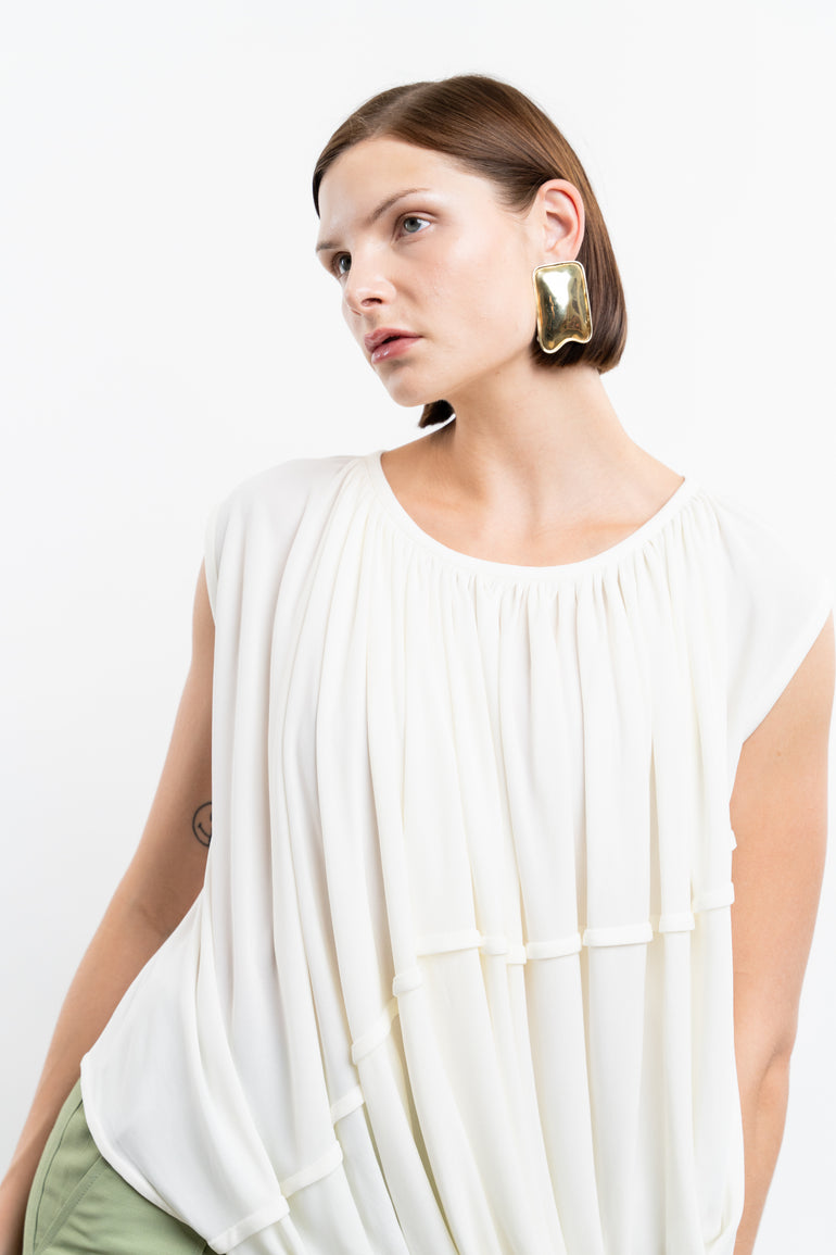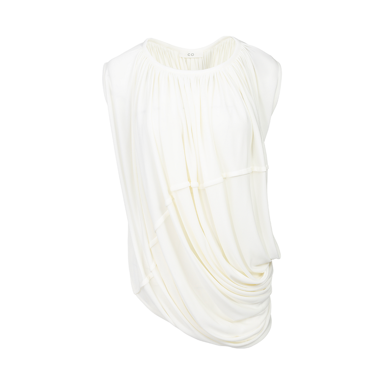 Sleeveless top in draped design with round neckline and delicate cap sleeves.