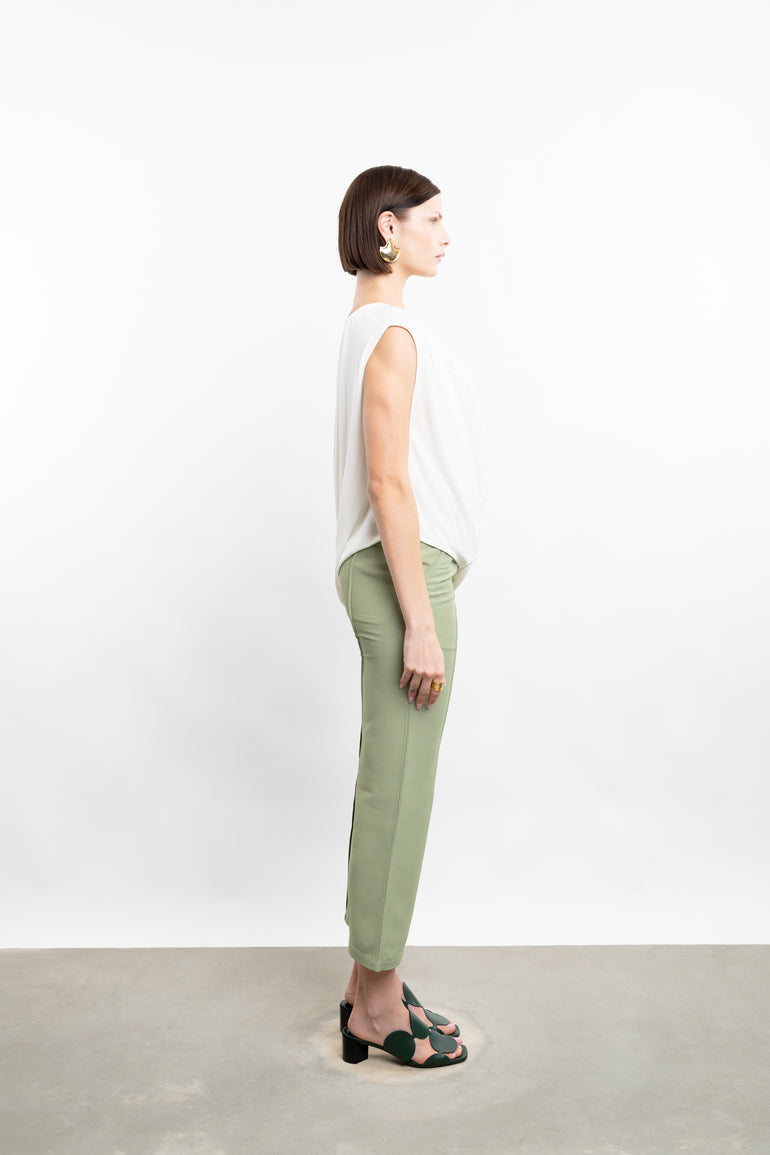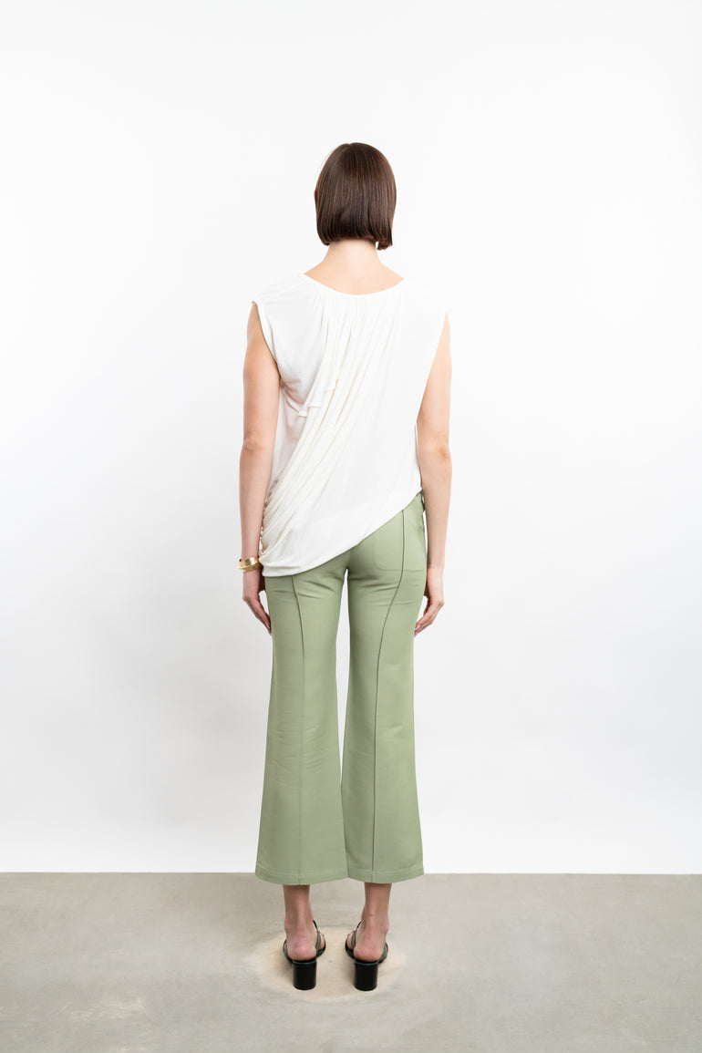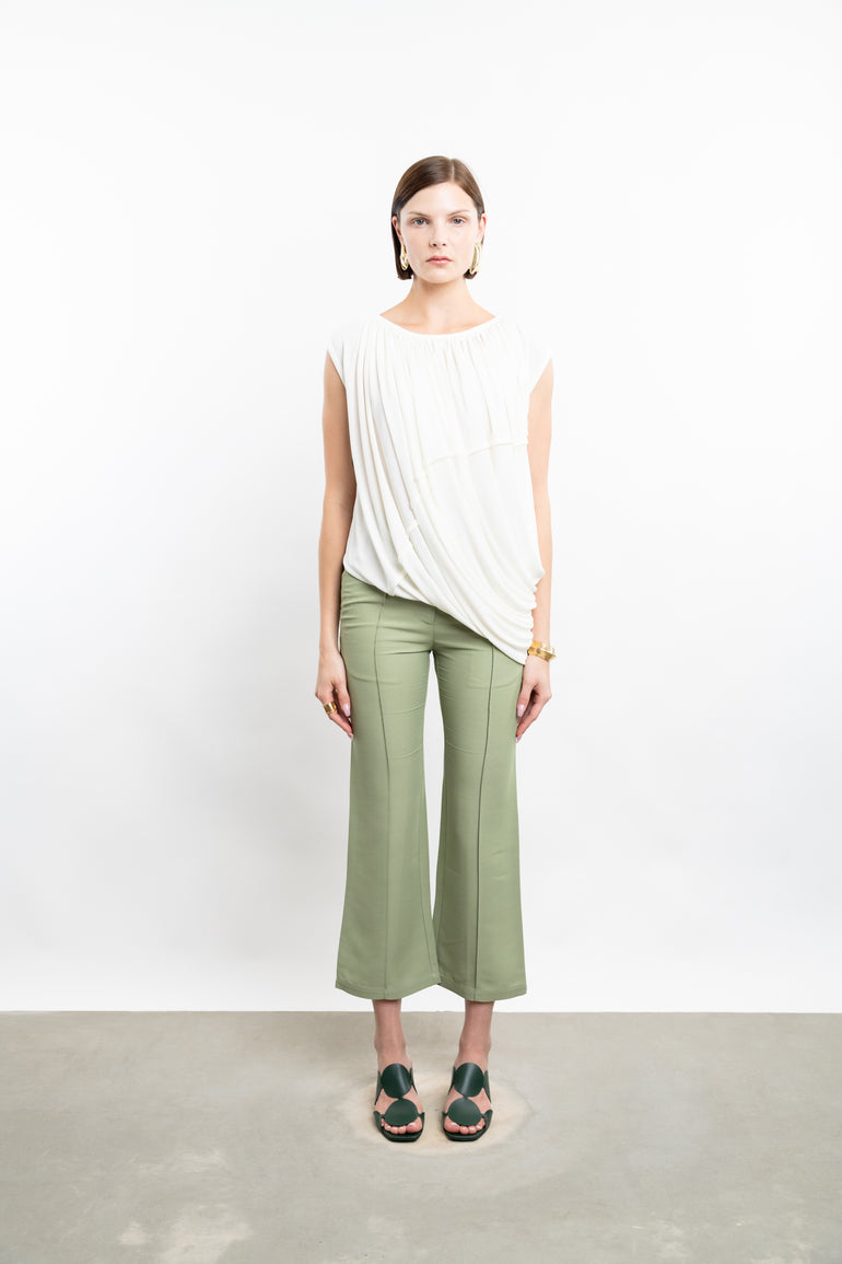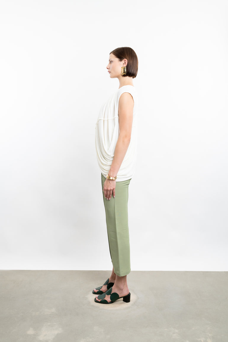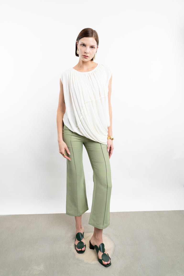 Sleeveless top in draped design with round neckline and delicate cap sleeves.