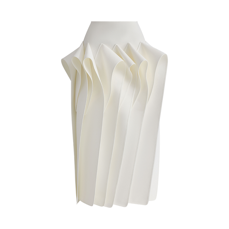 Midi skirt with draped panels, deep slits, long vent and back zip.