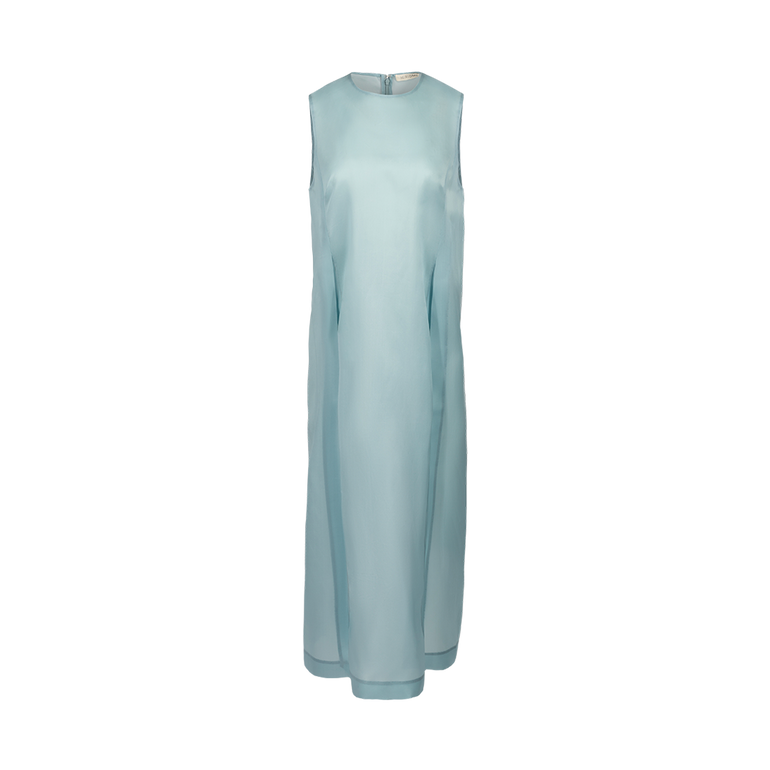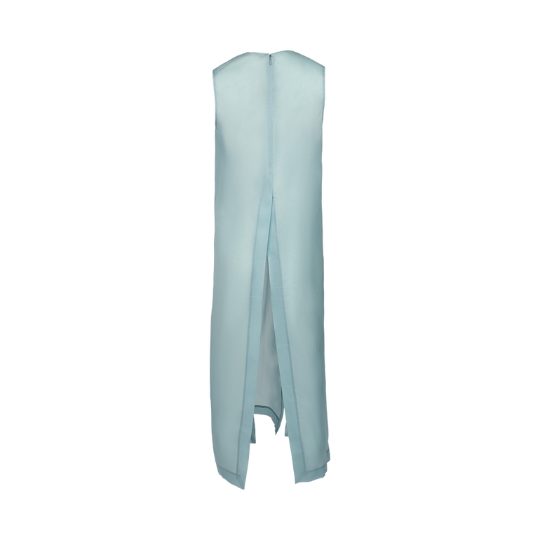 Sleeveless midi-length top with crew neckline, waist-high side slits and center back zip.